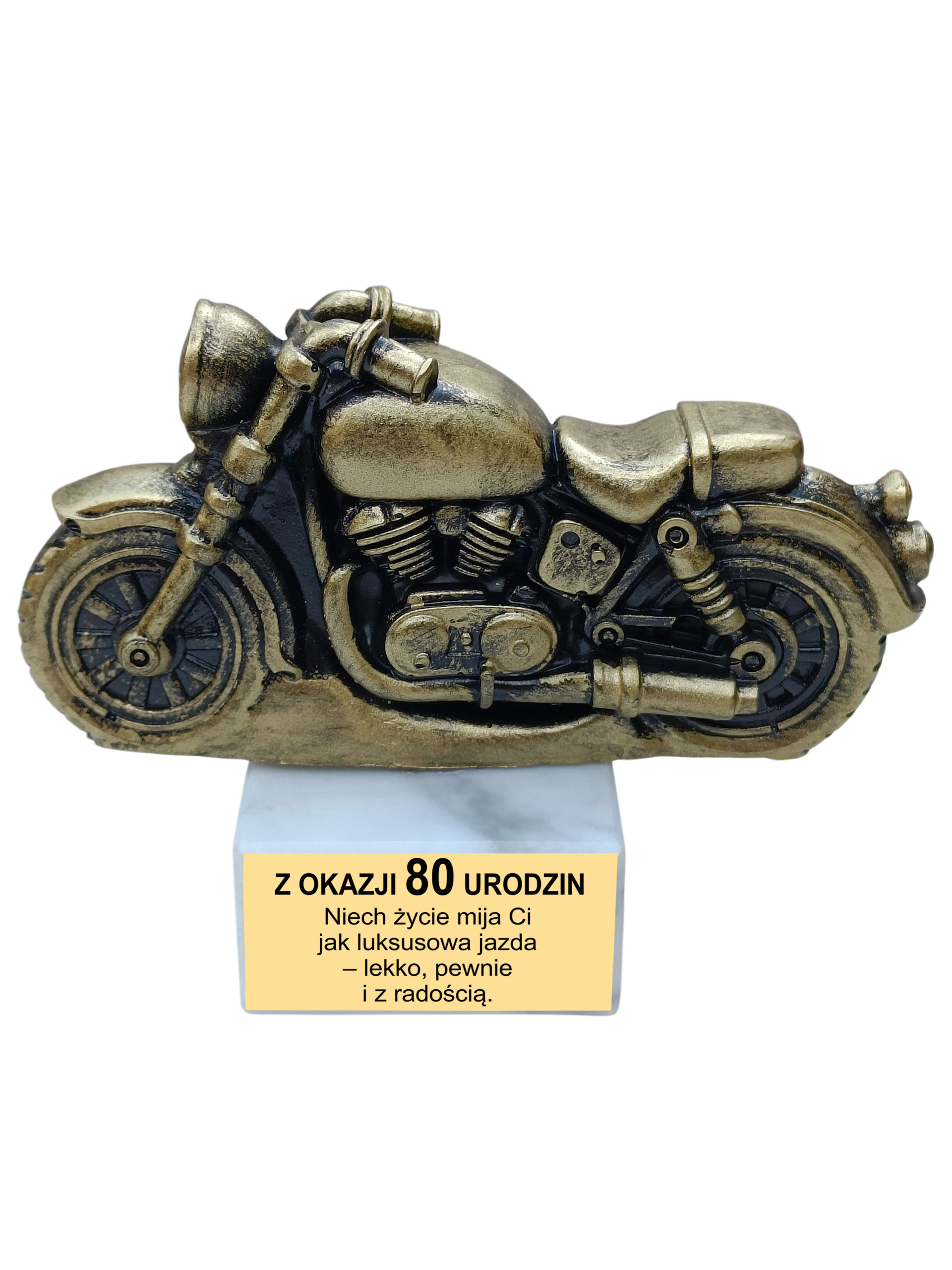 Ta elegancka statuetka z motocyklem to symbol stylu, spokoju i życiowej mądrości – idealny upominek dla osoby, która z uśmiechem i klasą pokonuje kolejne kilometry swojego życia.