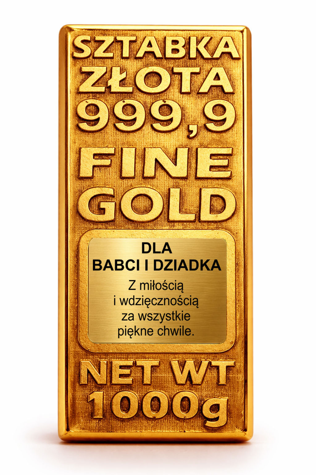 Ta złota sztabka to efektowny i wzruszający upominek, który zostaje na lata.