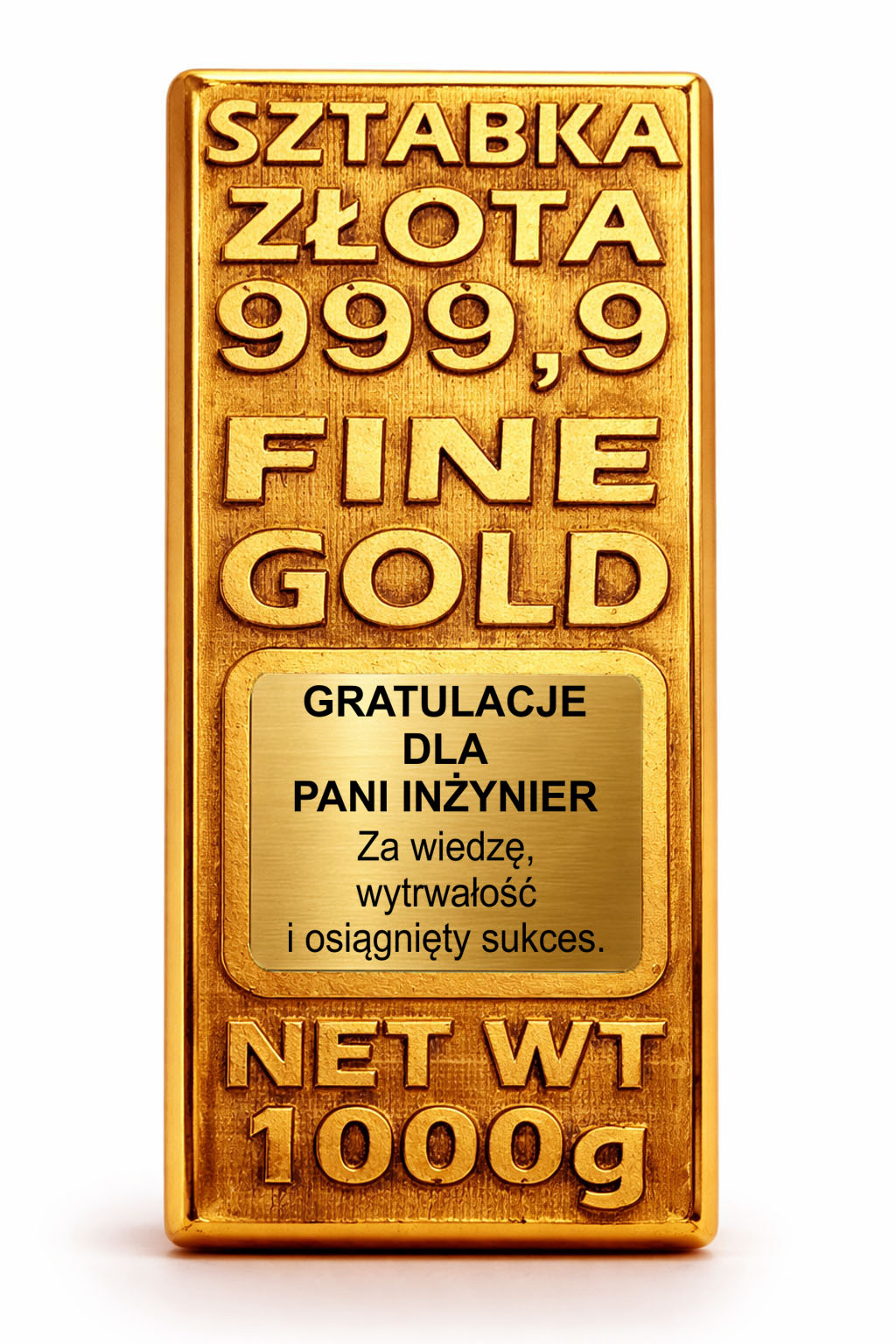 Ta złota sztabka to elegancki i symboliczny upominek, który podkreśla osiągnięcia i zostaje na lata.
