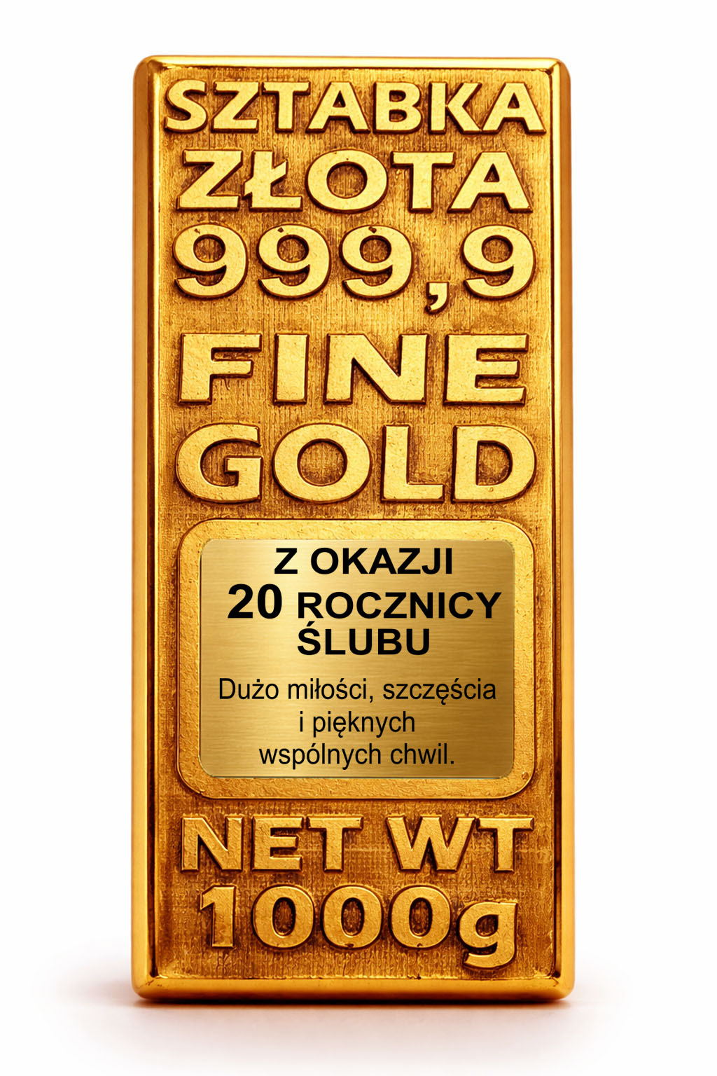 Ta złota sztabka to elegancki i symboliczny upominek, który podkreśla miłość, wspólne lata i zostaje na zawsze.