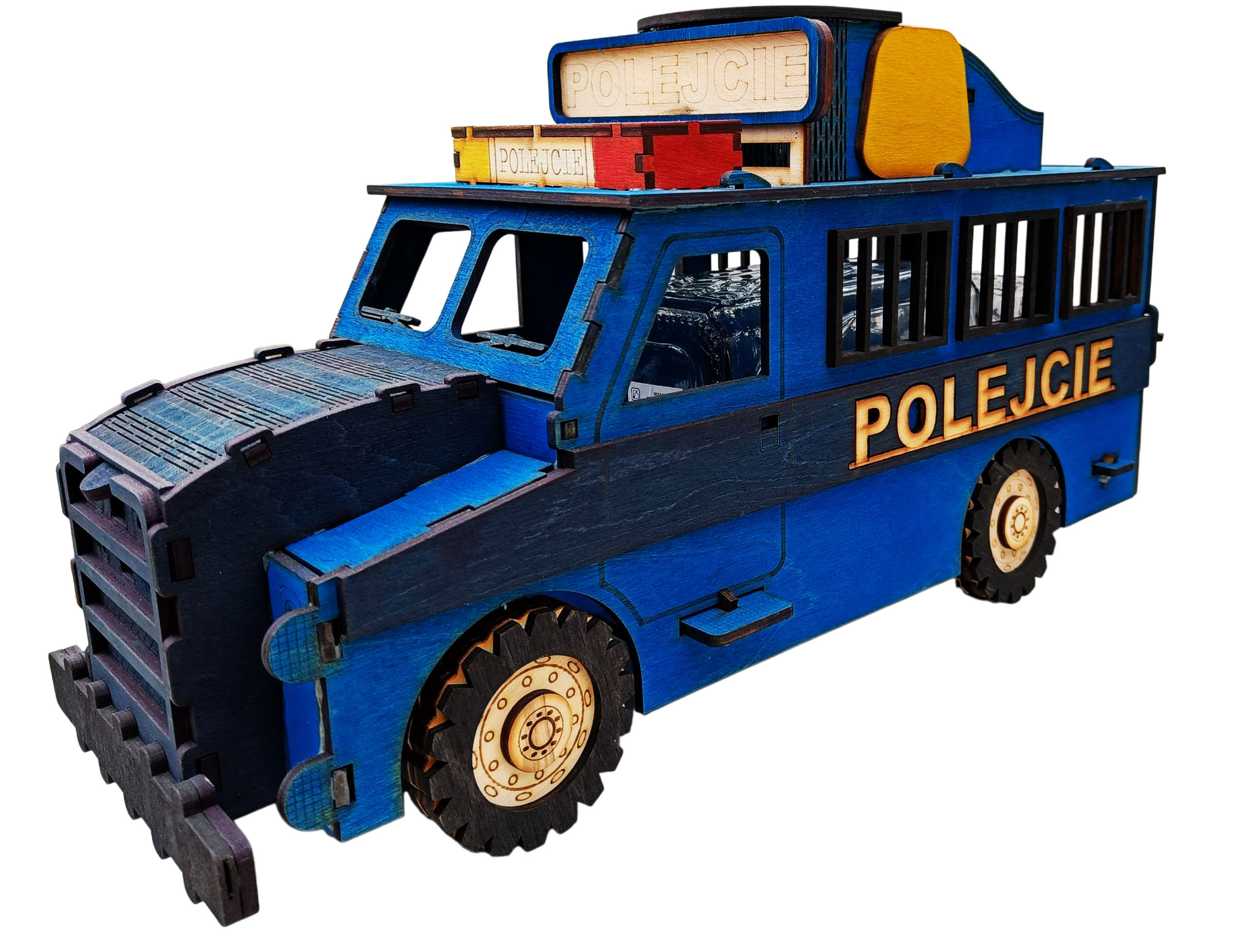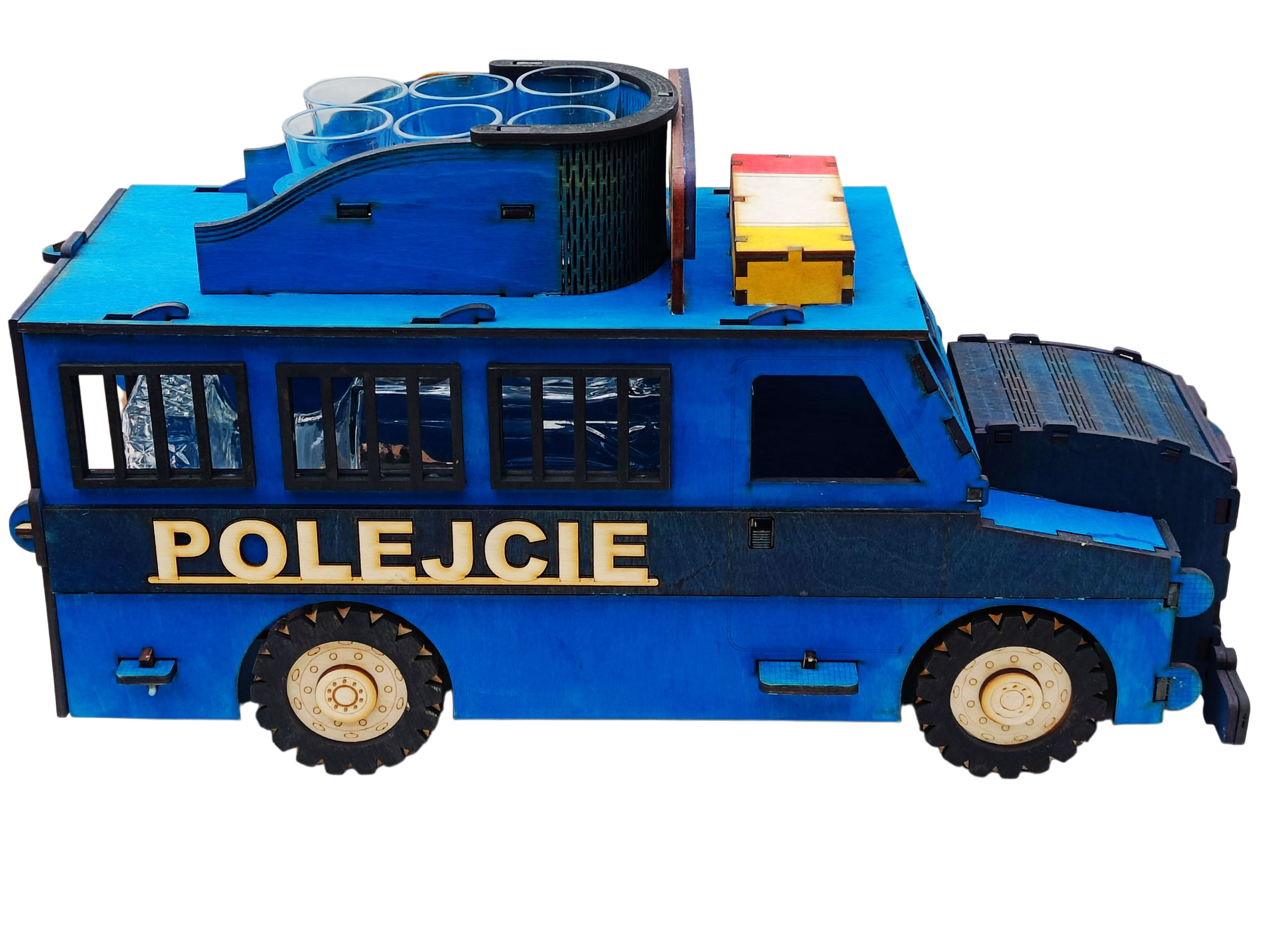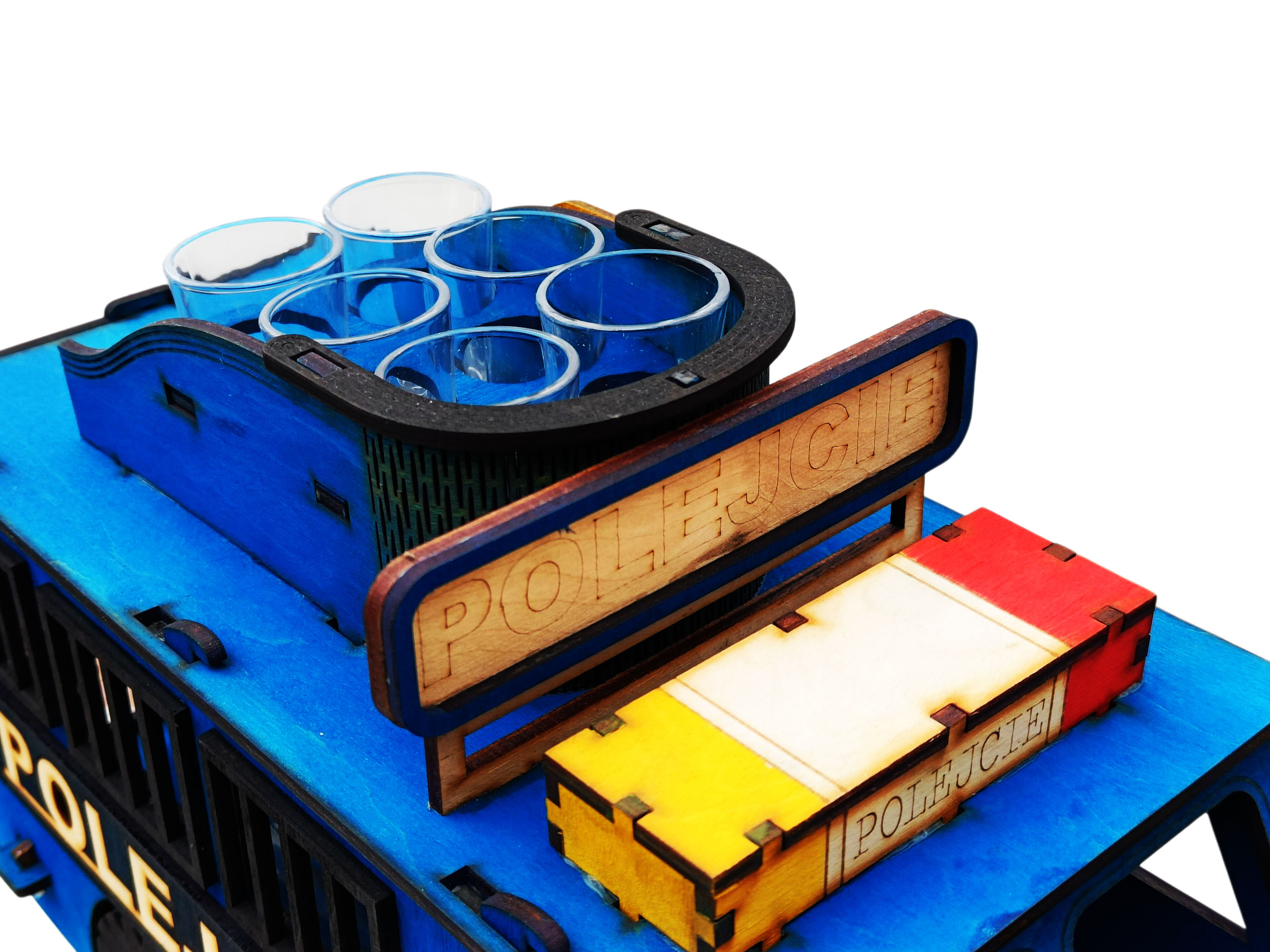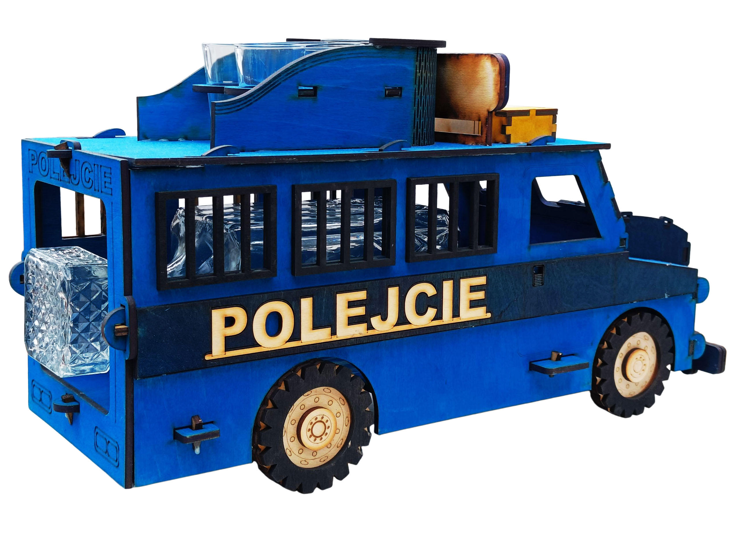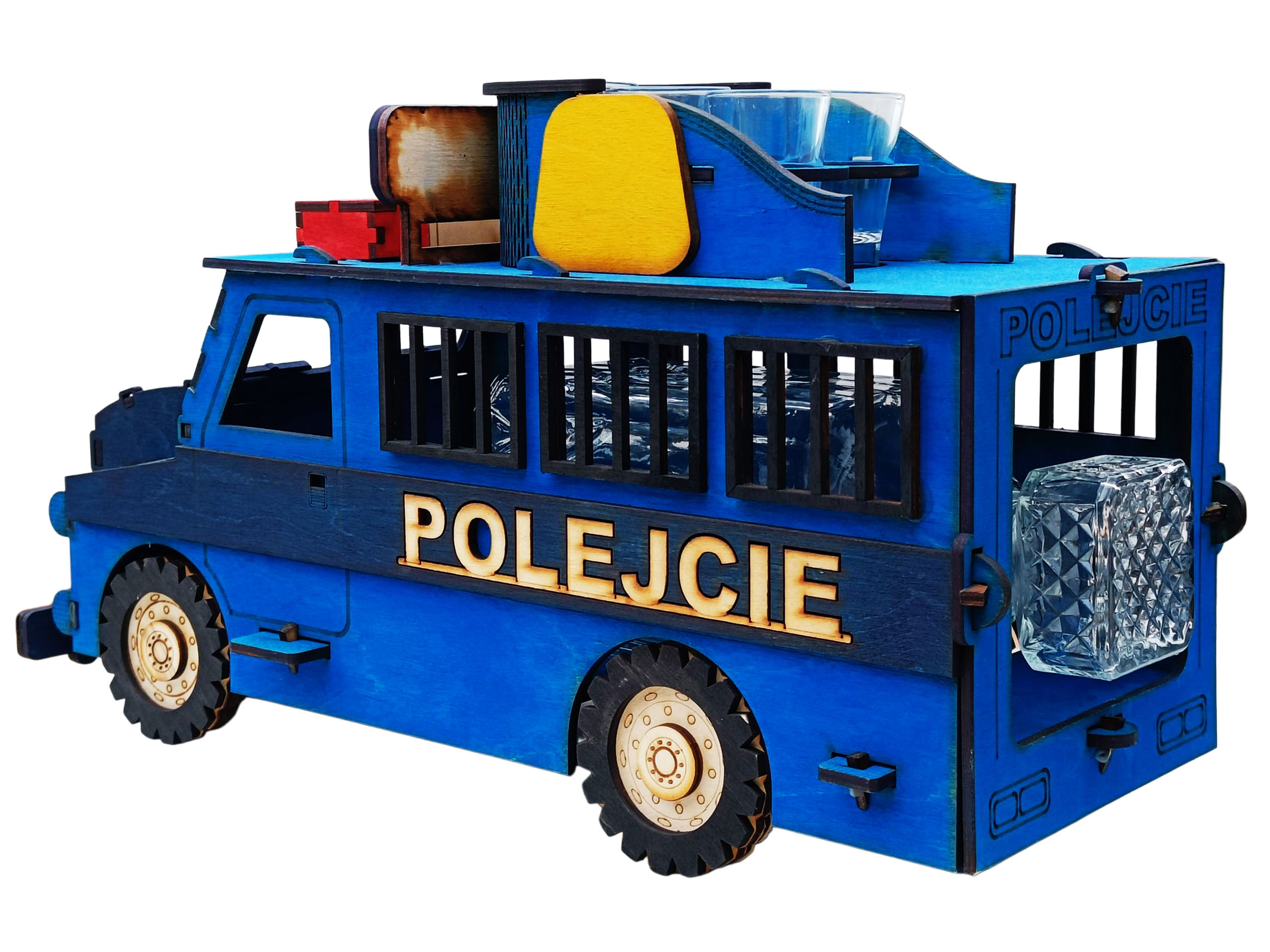 Drewniany Wóz Policyjny z Kieliszkami – Wyjątkowy Prezent na 70 Urodziny!